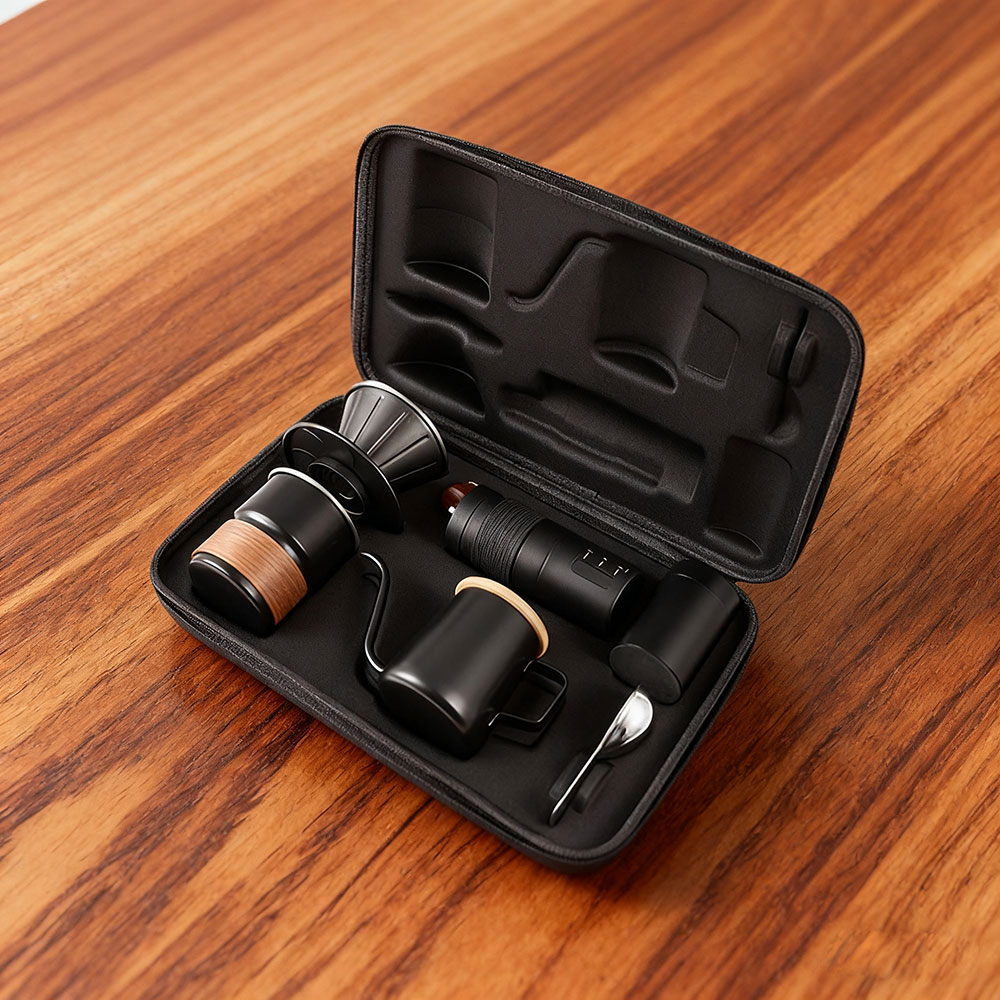 Designed specifically for coffee enthusiasts on the go. Constructed from durable materials with precision-engineered internal compartments, it securely holds your entire pour-over coffee setup—including kettles, filters, and grinders—while effectively protecting against shocks and scratches. Highly portable for camping, travel, and other outdoor adventures, it empowers you to enjoy the freedom of pour-over coffee anytime, anywhere, savoring rich flavors and the ritualistic experience of hand-brewed coffee.